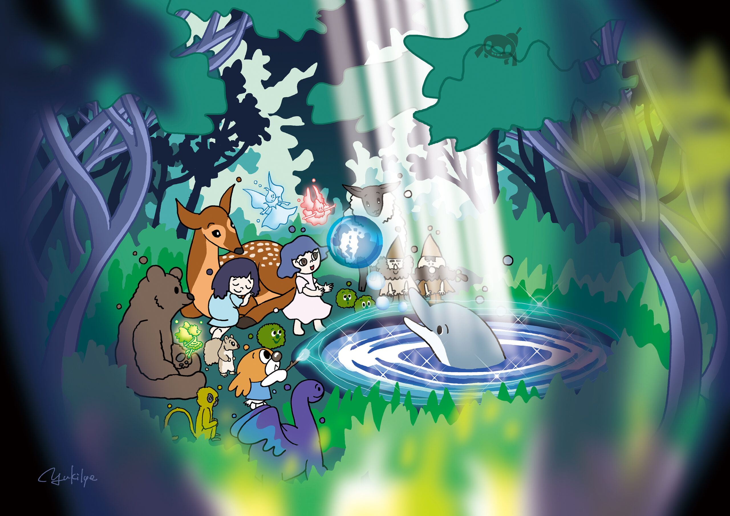 深い森の奥にある池に、小さな女の子の想いによってイルカが現れます。