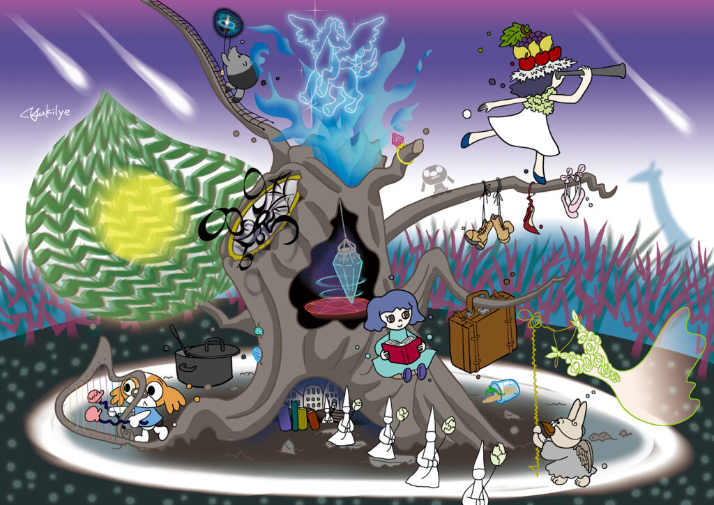 彼女たちは一本の木に魔法をかけ、それを家の代わりとして使っています。