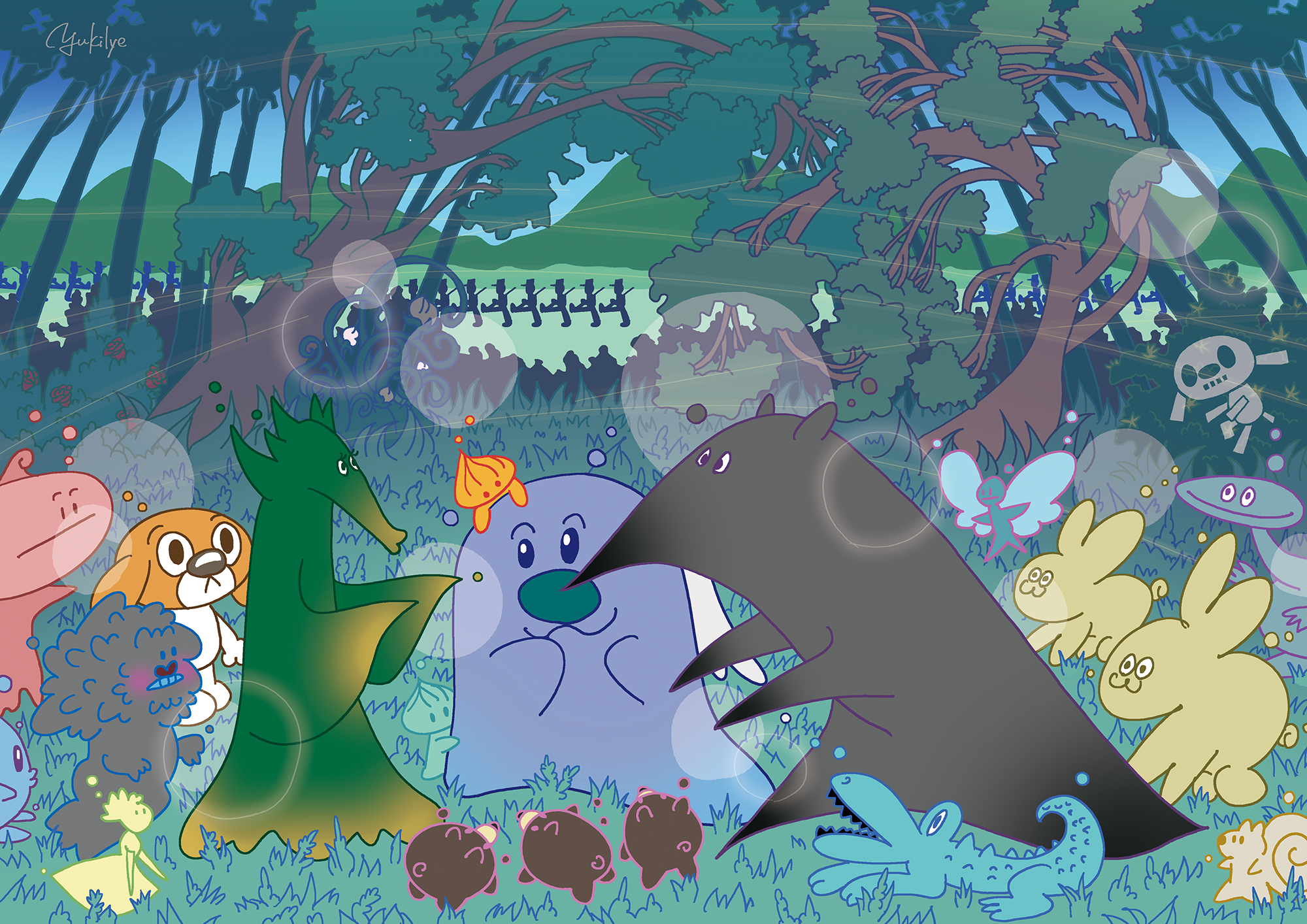 森は深く息をひそめ、ここに集う存在たちを、そっと包み隠しています。